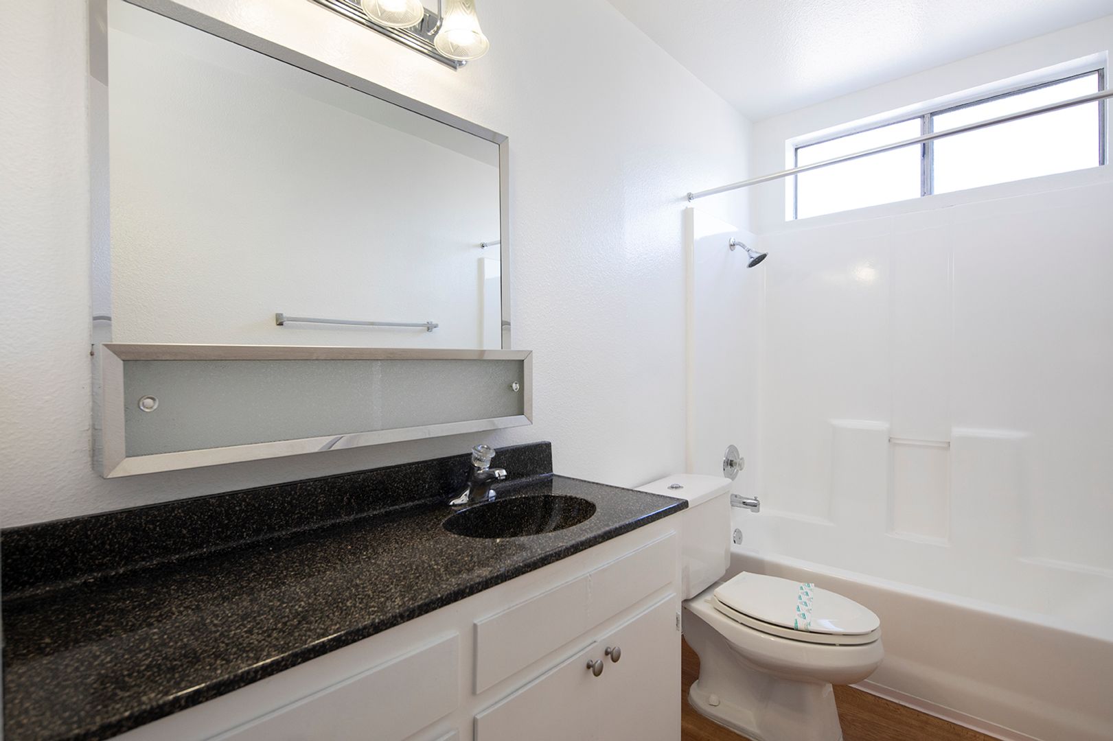 - Neutral, white bathroom vanity